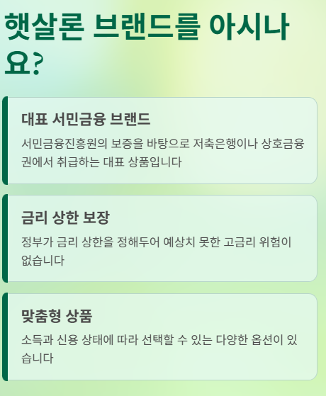 서민금융상품은 소득이 낮거나 신용등급이 낮아 제도권 금융 이용이 어려운 서민들에게 정부가 보증을 서주거나 직접 지원하여 낮은 금리로 대출을 받을 수 있도록 만든 상품들입니다. 그중에서도 햇살론은 대표적인 브랜드로, 서민금융진흥원의 보증을 바탕으로 저축은행이나 상호금융권에서 취급됩니다.