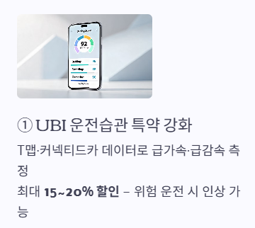 첫째, 운전 습관(UBI) 특약의 강화입니다. T맵 점수나 차량 자체 커넥티드 카 데이터를 활용해 급가속, 급감속 횟수를 측정하고 이를 통해 최대 15~20%의 할인을 제공합니다. 흥미로운 점은 2026년부터 일부 보험사에서 '위험 운전 패턴'이 감지될 경우 오히려 보험료가 인상될 수 있는 구조를 도입했다는 것입니다.