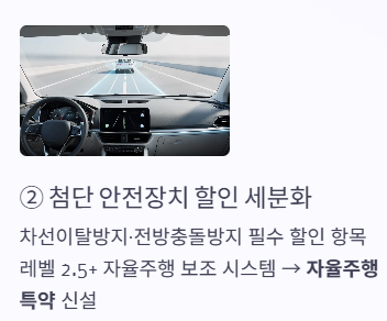 둘째, 첨단 안전장치 할인 항목의 세분화입니다. 이제 단순 블랙박스를 넘어 차선이탈 방지, 전방충돌 방지 보조 장치는 필수 할인 요소입니다. 특히 2026년형 최신 차량들에 탑재된 레벨 2.5 이상의 자율주행 보조 시스템을 상시 사용하는 운전자의 경우 추가적인 '자율주행 특약' 혜택을 받을 수 있게 되었습니다.