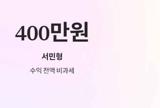 • 비과세 혜택: 일반형은 200만 원, 서민형은 400만 원까지 수익에 대해 세금을 1원도 내지 않습니다.