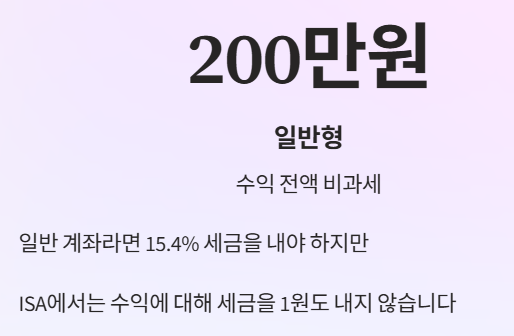 ISA의 가장 큰 매력은 역시 절세 혜택입니다. 일반 계좌에서 투자할 때는 수익에 대해 15.4%의 세금을 내야 하지만, ISA 내에서는 투자한 상품에서 나오는 이자나 배당소득에 대해 세금을 줄여줍니다.
