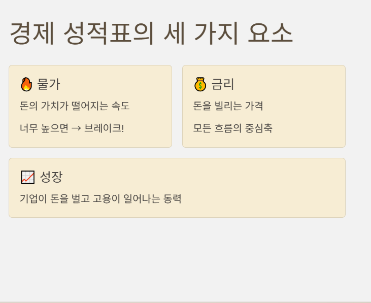 - 성장: 기업이 돈을 벌고 고용이 일어나는 동력입니다.
