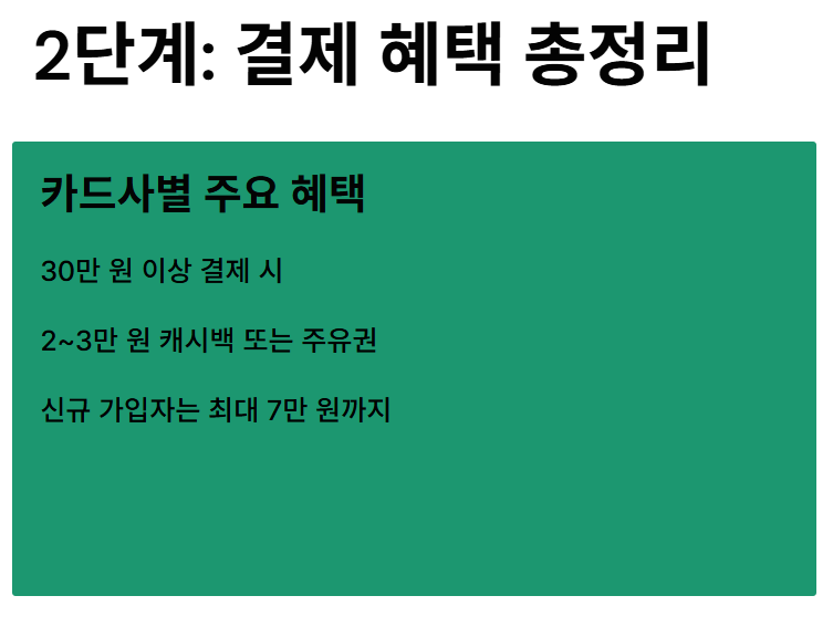 2. 결제 혜택: 카드사 캐시백 및 주유권