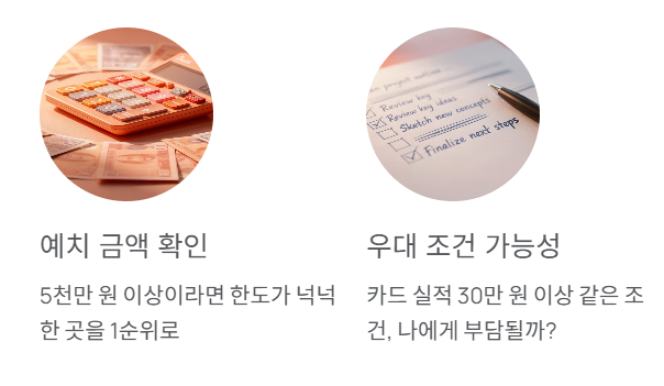 - 우대 조건 달성 가능성: 카드 결제 실적 30만 원 이상 같은 조건이 나에게 부담되지 않는지 체크하세요.