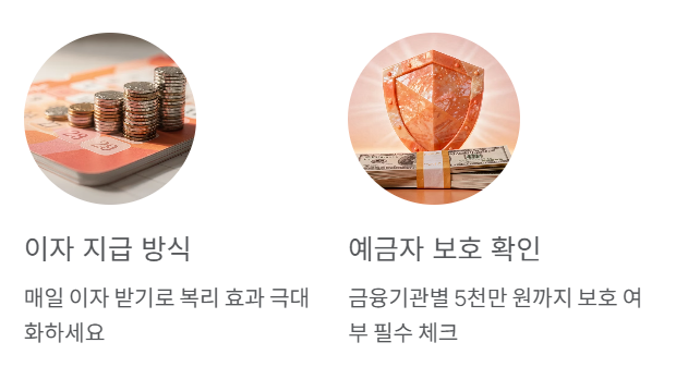- 이자 지급 방식: 매일 이자 받기 기능이 있는지 확인하여 복리 효과를 극대화하세요.
